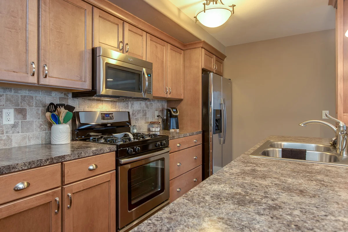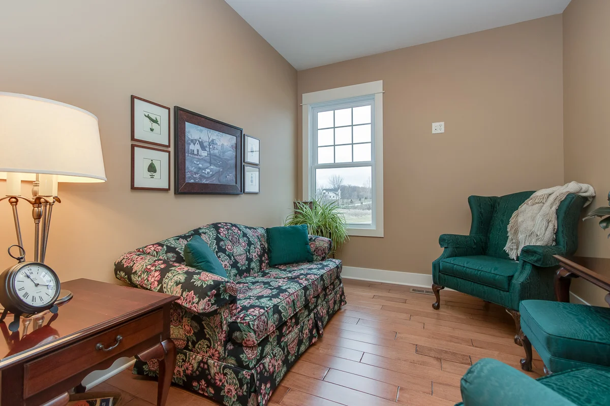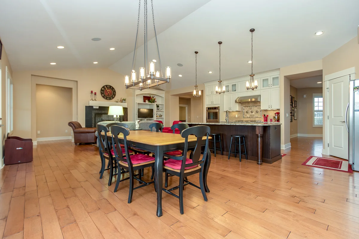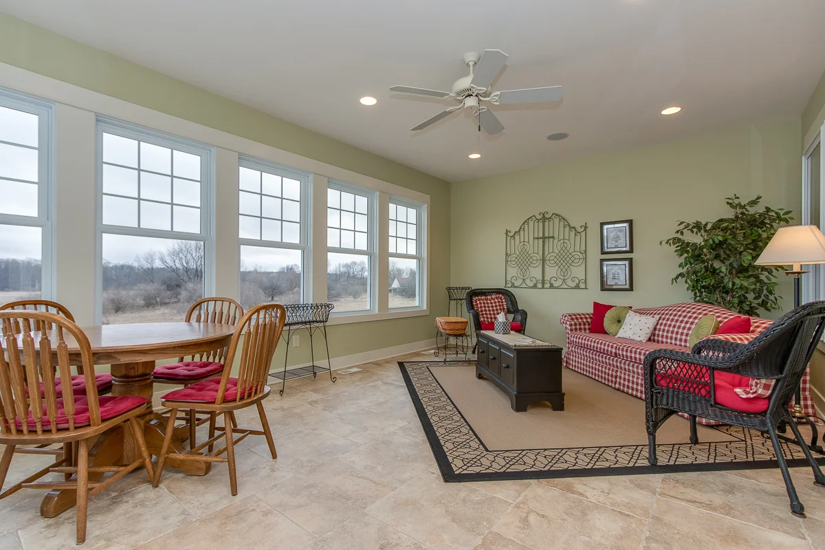A beautiful gourmet kitchen, with double ovens, walk in pantry, custom cabinetry, an extra large granite island with pendant lighting and dining area allows for entertaining groups of all sizes! Just off the kitchen you will love the location of the built-in corner office before entering the master suite. The main level master includes a sitting area with custom built in bookcase and views of nature,a large walk-in shower, air jet tub, dual vanities, and walk in closet. Just off the dining area and leading to the deck is the three-season room with a wall of windows overlooking the backyard and more views of nature. The large main level laundry room and custom built-in lockers with bench located just off the side entrance and the attached garage. Separate staircase in garage leads to the utility area of the basement, with only the mechanicals and storage.