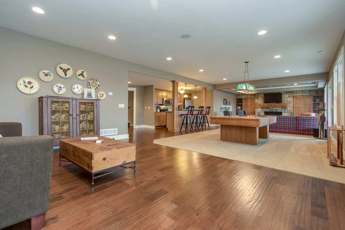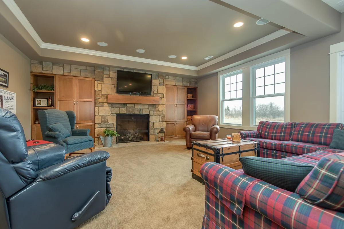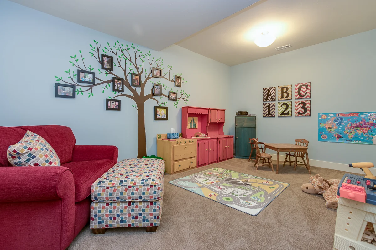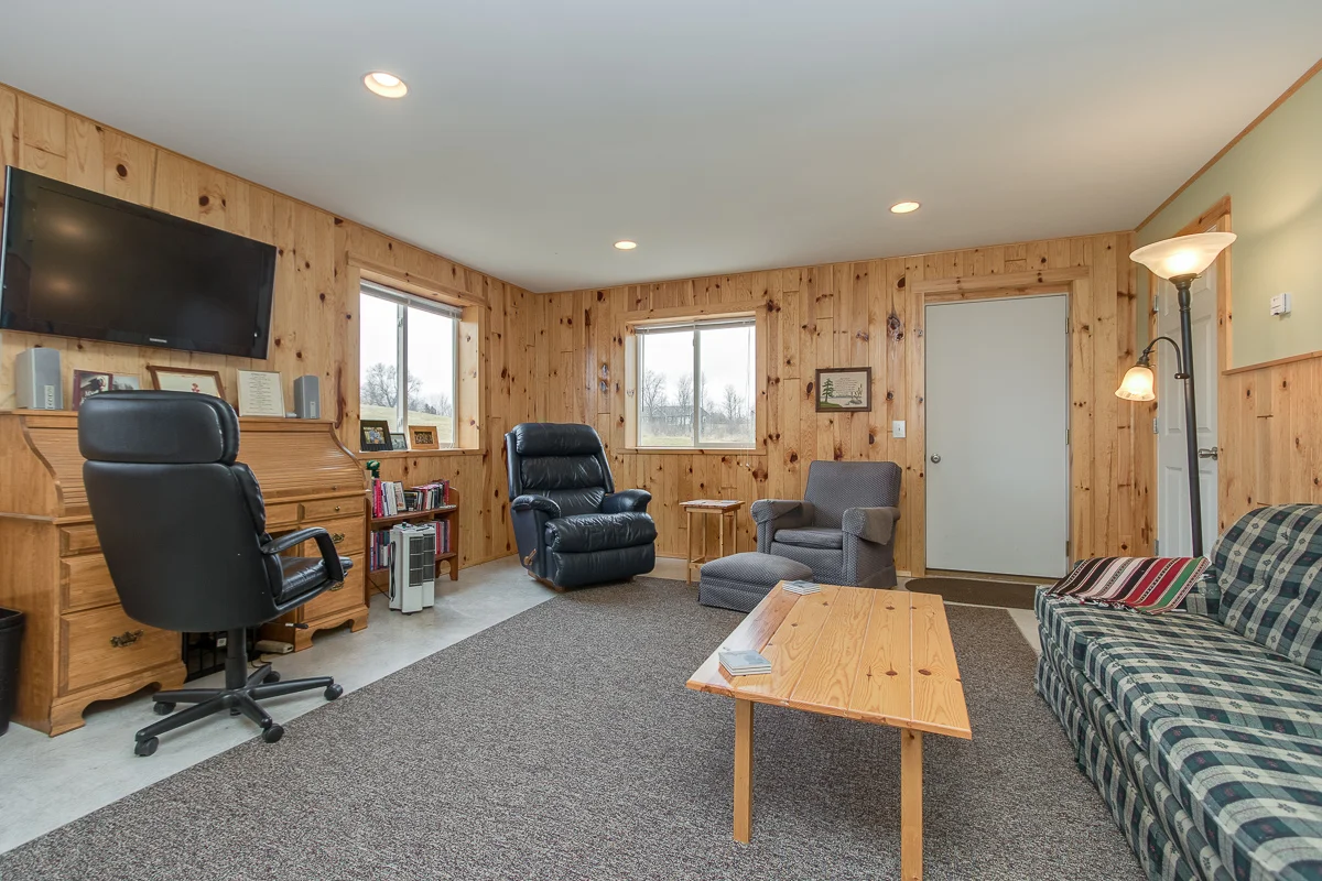 The pole barn (large -32'x56'with heated 16'x24' bump out) offers a large space and separate office that can be a great place for either a hobbyist or working from home (includes bathroom*). The large walk out lower level, is well equipped with a full kitchen, two additional bedrooms, full bath, spacious family room with huge stone surround gas fireplace and tray ceilings,a large game area with pool table and adorable play room with a secret playroom that is hidden by a sliding bookcase that kids will love to explore.